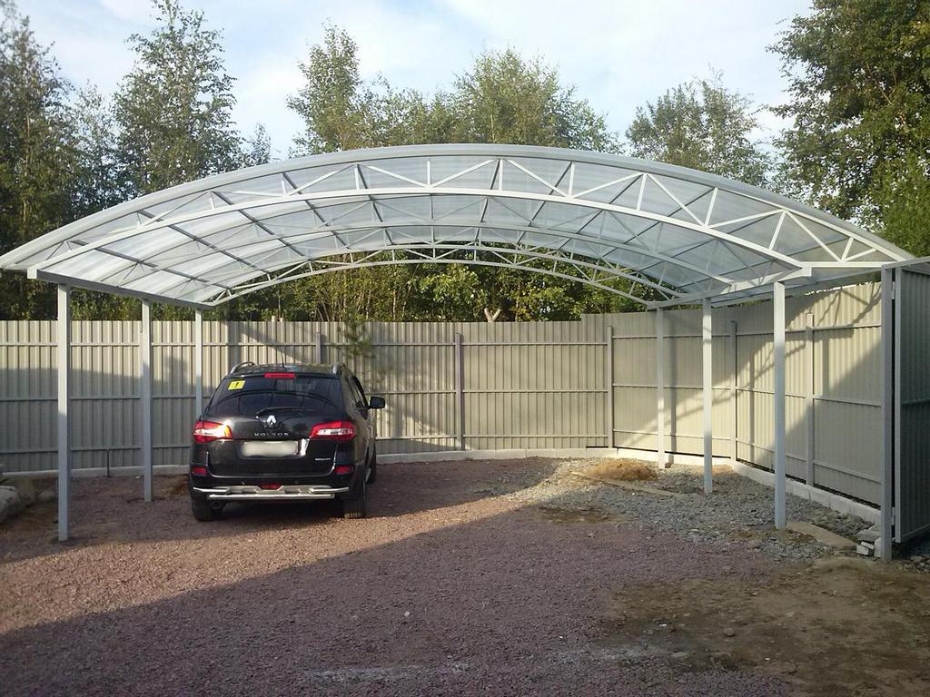 Поэтому компания "Навес Строй" настоятельно рекомендует не экономить, а усилить каркас навеса для двух автомобилей более жёсткими профилями с увеличенной толщиной металла и количеством несущих ферм.